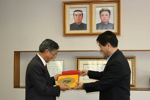 我校副校长赵显利对朝鲜大学校建校50年的艰难发展历程表示钦佩,他也向朝鲜大学校方面介绍了我校的基本情况,基于办学渊源、发展历史、专业设置等方面的相似,赵显利副校长希望两校以后可以在教学、体育、文化等方面经常交流,共同发展。赵显利副校长向朝鲜大学校赠送了礼品,以恭贺朝鲜大学校建校50周年。