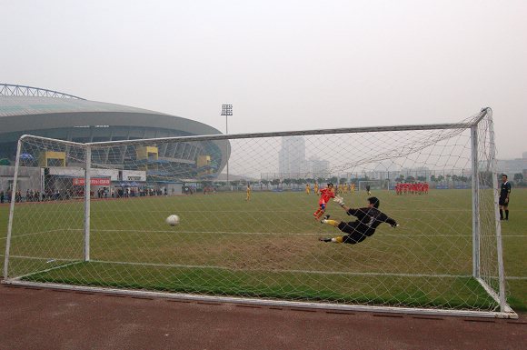 让我们再回顾一下激动人心的冲甲之战的点球决战过程吧。首先是天津火车头队罚点,由于压力过大,这位对方的场上核心队员竟然第一个罚球就将球罚飞了~~~
