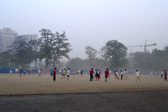 2002年10月16日,刚刚拆迁完的体育馆空地。