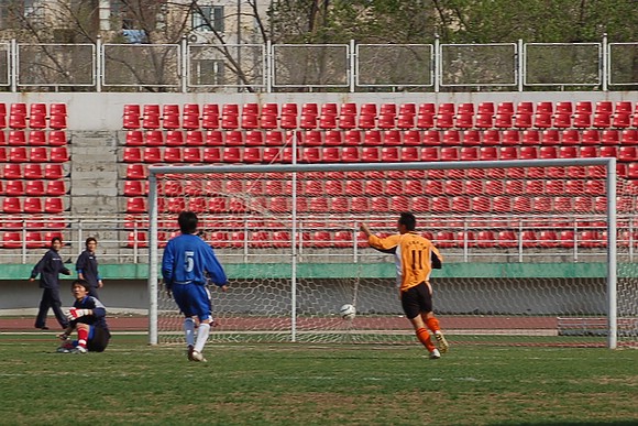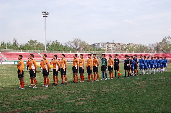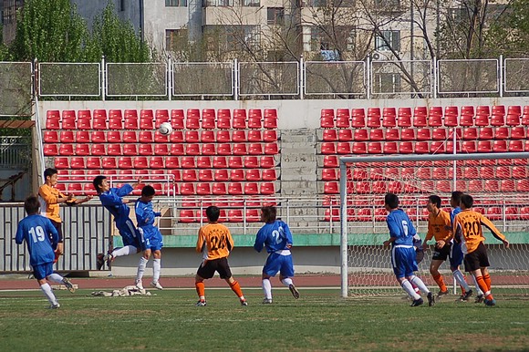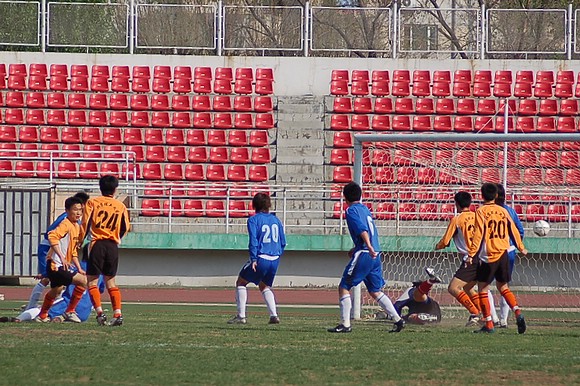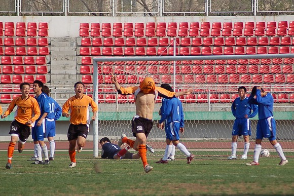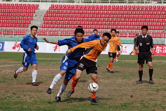 5月20日下午3:00,全国职业足球乙级联赛第三轮比赛在哈尔滨工业大学体育场举行,由我校足球队(橙色球衣)客场迎战哈药毅腾队(蓝色球衣)。哈药毅腾队队员大部分都是来自大连的职业球员,其中包括两名重金引进的中超球员,今年联赛开赛之前就已经定下了冲甲的目标。