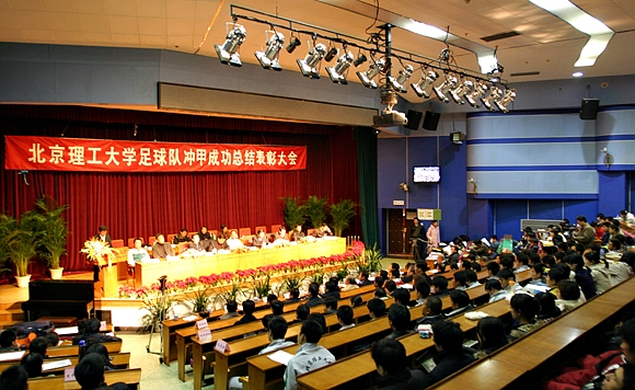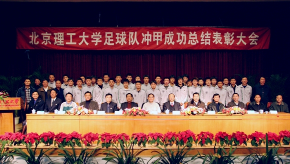 12月15日下午,我校召开总结表彰大会,对在今年全国足球乙级联赛中取得辉煌战绩的学生足球队进行了表彰。原北京市副市长、北京工业大学校长范伯元,教育部体卫司体育处处长季克异、王龙龙,教育部大体协秘书长助理王刚,中国足协副主席南勇,北京市教育委员会副主任杜松彭,北京市足协秘书长李维淼等相关单位领导应邀出席了表彰大会。出席会议的还有校长匡镜明,常务副校长李志祥,党委副书记、副校长杨宾,党委副书记侯光明,副校长孙逢春、杨树兴,足球队全体队员、领队、教练组成员。500余名师生代表参加了今天的表彰大会。