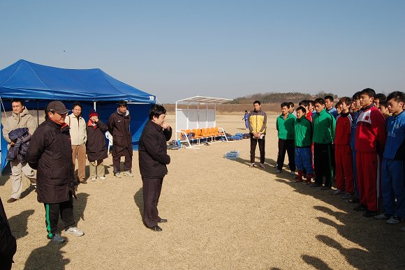 杨宾副书记在向全体队员讲话指出:“此次在韩冬训训练强度非常大,希望大家克服困难,虚心向韩国大学生足球队学习,在训练和比赛中充分发挥团队精神,力争将球队的整体水平提高到一个新的档次。”