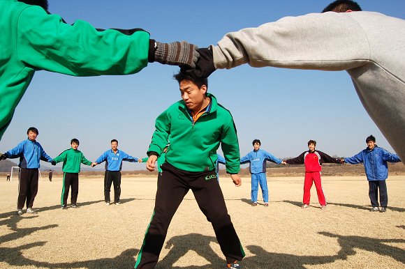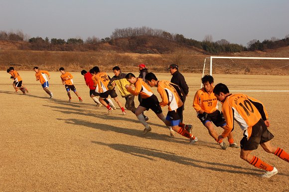 日本無碼足球队与韩国大学生足球队进行友谊比赛。
