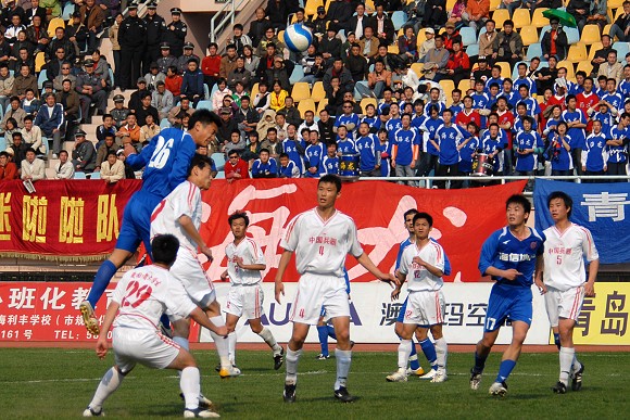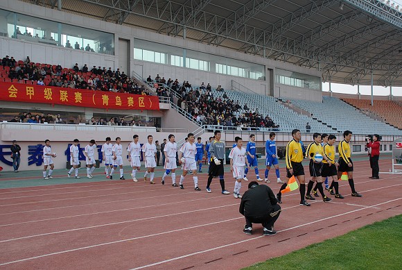 比赛前20分钟,在球迷的呐喊助威声中,爱国者大学生队与完全高于自己实力的青岛海利丰一直保持均势,双方互有攻守。第20分钟,青岛海利丰改变战术,提前换人,试图改变局势,让青岛海利丰的进攻稍有起色。