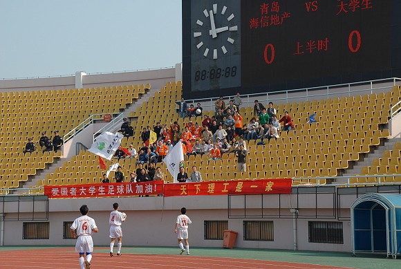经过90多分钟的顽强拼搏,爱国者大学生队以1比2惜败青岛海利丰,但是整场比赛所表现出的团队精神和永不服输的精神,面对中甲劲旅,他们虽败尤荣。比赛结束之后,爱国者大学生全体队员,向为他们助威的青岛理工大学的学生和爱国者助威团鞠躬感谢,同学们给予他们热烈的掌声,为他们不断拼搏的精神喝彩。