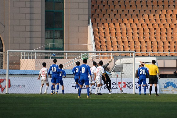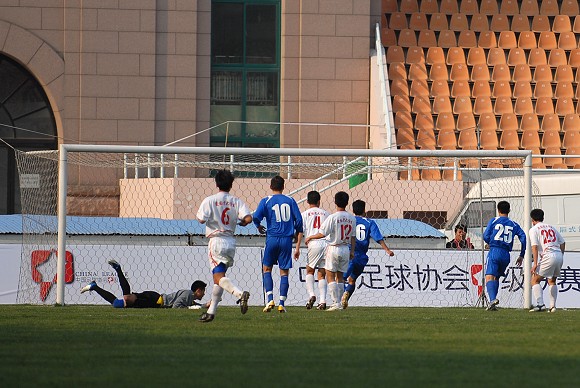 第64分钟,青岛队获得一个位置绝佳的任意球机会,青岛队丁伟主罚,球绕过人墙进入球门,青岛队2比0再下一城。