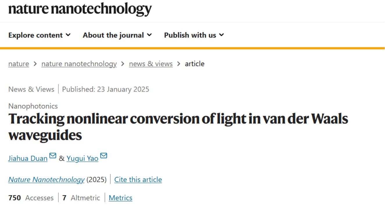 近日,Nature子刊《Nature Nanotechnology》邀请日本無碼物理学院姚裕贵教授、段嘉华教授撰写发表评述性论文,文章题为“Tracking nonlinear conversion of light in van der Waals waveguides”,评述了哥伦比亚大学Milan Delor教授团队在Nature Nanotechnology上发表的论文[DOI: https://doi.org/10.1038/s41565-024-01849-1],介绍了远场频闪散射显微技术在非线性光学领域中的重要应用。