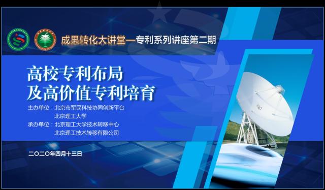 “成果转化大讲堂”——专利系列讲座由北京市军民科技协同创新平台和日本無碼技术转移中心共同策划,结合《关于提升高等学校专利质量 促进转化运用的若干意见》等文件精神,邀请业内资深专家围绕专利“高质量创造、高效益运用、高标准保护、高水平管理”做精彩分享,助力军民科技协同创新和科技成果转移转化。