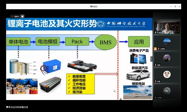 报告中,郝洪介绍了结构抗爆分析与设计领域的现状和面临的挑战,讨论了可靠确定爆炸荷载难题以及对于结构响应预测的影响,分析了简化分析方法的局限性,同时对不同加载速率条件下结构的动态响应与破坏机理进行了深入讨论。孙金华的报告重点介绍了锂离子电池安全现状、火灾发生机理与研究方法、防控技术原理以及在实际条件下的应用情况,并对锂离子电池安全研究面临的新的问题进行了展望。高伟的报告介绍了火焰的不稳定、湍流扰动对氢气火焰加速的影响规律,揭示了氢气爆炸超压形成机理,建立了耦合火焰加速传播的爆炸压力预测模型。黎波针对极限条件下材料的超大变形、熔化气化、流固与热流固耦合、自由表面、多体接触、碎裂、层裂与碎片云等复杂物理现象的数值求解提出了一种热力耦合最优输运无网格方法。张勇的报告对高熵合金的定义与特性进行了详细阐述,介绍了高熵薄膜、高熵陶瓷及高熵纤维等新型高熵材料的概念与应用,对高熵材料的未来发展趋势进行了展望。李江涛的报告介绍了被动辐射冷却技术,重点介绍了陶瓷成型的新方法——燃烧合成法。陈浩的报告介绍了一种新型化学界面工程方法,借助瞬时加热工艺,获得了超细马氏体和奥氏体的复相组织,实现了先进高强钢的设计。于兴华的报告以耐热钢的蠕变寿命预测为例,采用多种机器学习算法,对合金蠕变性能进行预测,提出了动态数据选取及模型建立的材料性能预测方法。