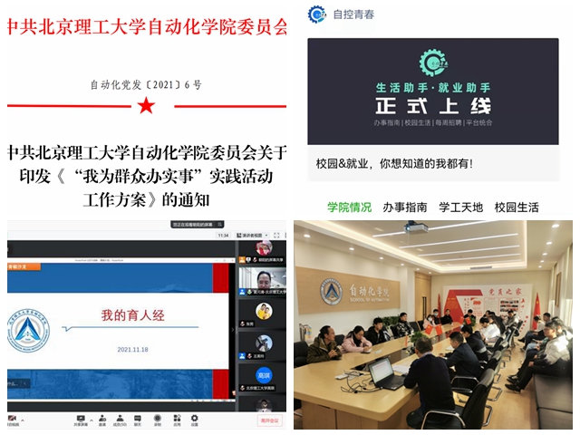 近期,在学院党委的统筹部署下,各党支部纷纷开展“我为群众办实事”主题党日活动,如首批高校“双带头人”教师党支部书记工作室导航制导与控制教工党支部围绕人才培养开展主题党日活动,就学生群体关心的科研选题、创新创业竞赛、出国交流项目、就业求职等发展成长问题,精心解答。