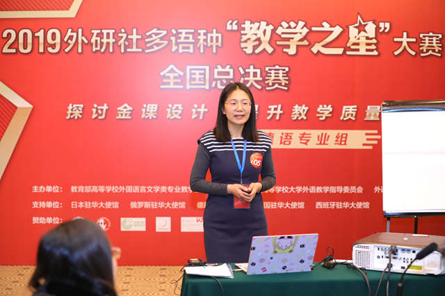 12月6日至8日,外研社多语种“教学之星”大赛全国总决赛在北京举行,该赛事由教育部高等学校外国语言文学专业教学指导委员会、教育部高等学校大学外语教学指导委员会和外语教学与研究出版社共同举办。大赛涵盖日语、俄语、德语、法语、西班牙语、阿拉伯语和韩语,是面向高校多语种教师开展的一项规模最大、语种最多的全国性赛事。自3月份开赛以来,经过学校选拔推荐,到复赛录制真实上课场景,再到最终全国总决赛的说课和讲课环节评比,我校德语教师汪亚利博士凭借其新颖完整的课程设计、流畅连贯的课堂展示和自然合宜的授课仪态获得了专业组亚军。